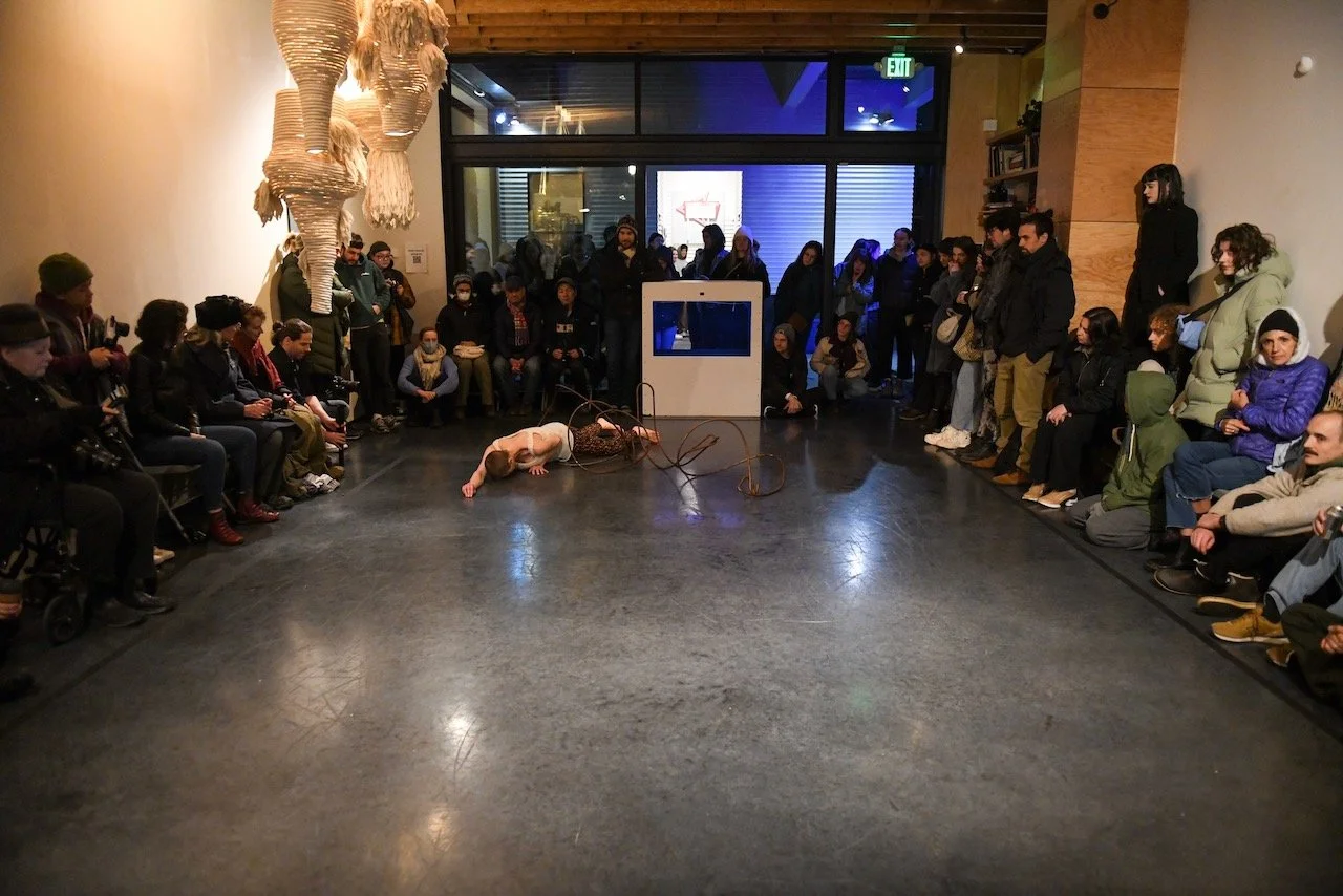The featured artists in this project are Abdiel, Cypher Queenz, Dani Blackwell, Hannah Simmons and Alethea Alexander, Lucie Baker and Connor Walden, Maia Melene Durfee, Nahaan, and Undercurrent. Together, we look at our relationships to water, winter, plunging inward, and light contained in restriction and create an experience of our literal, figurative, and conceptual waterways through dance, movement, and mixed media performance.
